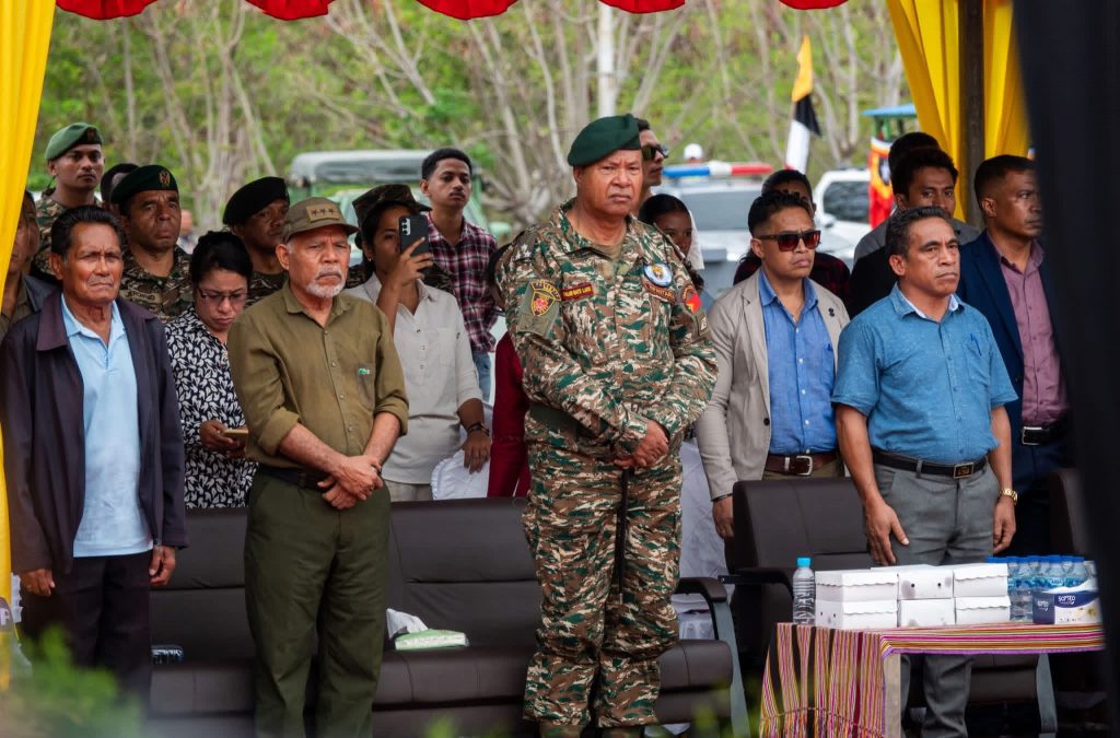 Hola parte iha serimรณnia ne’e hanesan Ministro Assunto Kombatentes Libertasaun Nasionรกl Sr. Gil da Costa Monteiro ‘Oan Soru’, Sekeretariu Estadu Veteranus Sr. MERAK, Xefe Estadu Maior Jenerรกl F-FDTL Tenente Jenerรกl Falur Rate Laek, Tenente Jenerรกl (Ref) Lere Anan Timur, Prezidente CCLN, Prokurador Geral, Adjunta Xefe Casa Sivil, Prezidenti da Autoridade Munisipal de Manatuto,Veteranus Munisรญpiu Manatuto, Administrador Postu sira, F-FDTL, PNTL, Diretor no Diretora sira, Autoridade Lokal sira, inklui mรณs Famรญlia Mรกrtires Libertasaun Nasionรกl sira nomรณs komunidade Manatuto tomak.