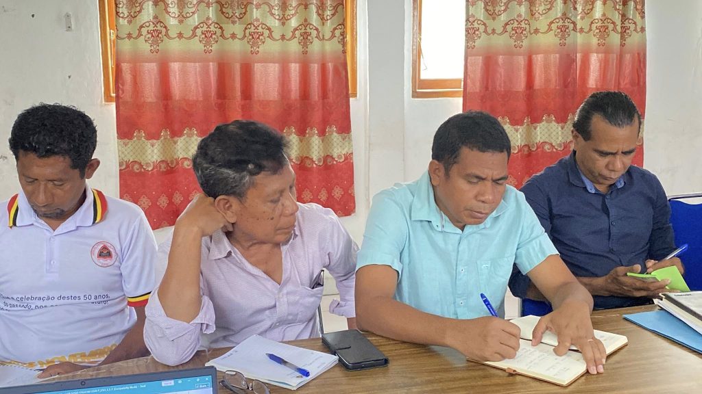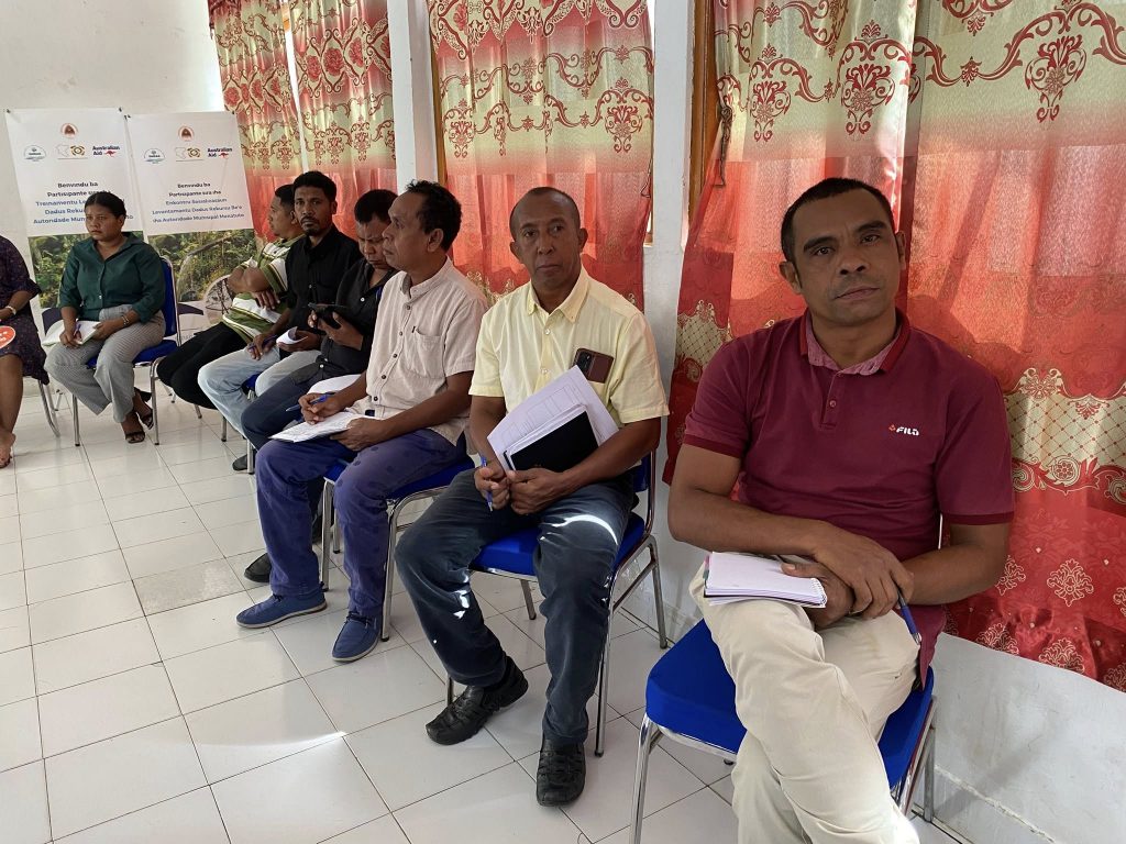 Programa Neโe Halaโo Husi Smasa, Dnras, No Apoio Husi Parseiro Partisipa. Hodi Sosializa Informasaun Ba Autoridade Lokal Sira Molok Ba Koleksaun Dadus Bee Matan Iha Terenu.