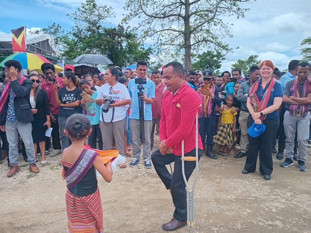 Exelรฉnsia Prezidente da Autoridade Munisipal de Manatuto Sr.Luis Inacio Henrique Fernandes Akompainha Sua Exelรฉnsia Sekretaria Estadu ba Igualdade (SEI), Elvina Sousa Carvalho, hanesan Interina Ministra Solidaridade Sosial no Inklusaun (MSSI), selebra Loron Mundial Difisiรฉnsia nian hamutuk ho maluk Difisiรฉnsia sira iha Munisipiu Manatutu,