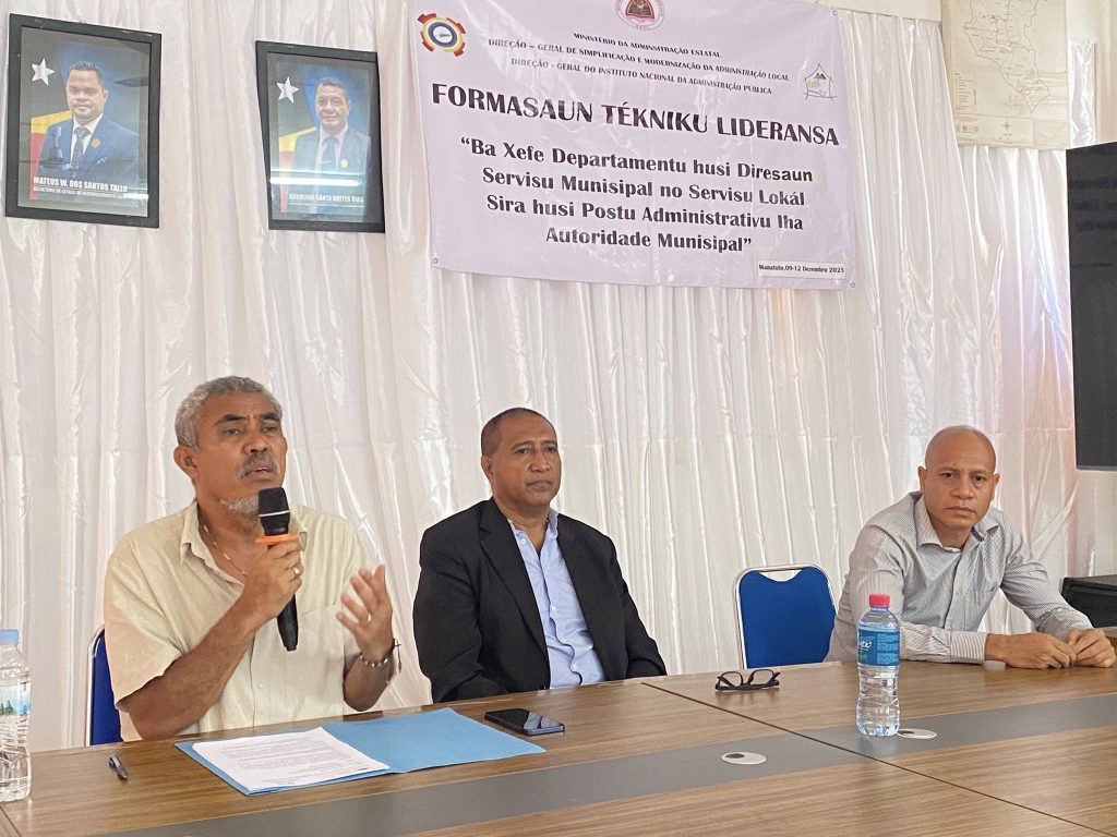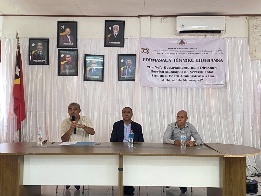 Prezidente da Autoridade Munisipal de Manatuto Sr.Luis Inacio Henrique Fernandes Abertura aktividade Formasaun Tekniku Lideransa no Cefi Departementu Husi Diresaun Servisu Munisipal Servisu Lokal Sira Husi Postu Administrativu 6 iha Salaun Autoridade Munisipal Manatuto Villa, Objektivu husi Formasaun ne’e maka Hodi hasae liu tan konhesimento no Melhora liu tan Servisu iha Autoridades Munisipal no Autoridades Local Posto Administrativo Sira nian iha Munisipio Manatuto, No Formasaun neโe halao durante Loron tolu.