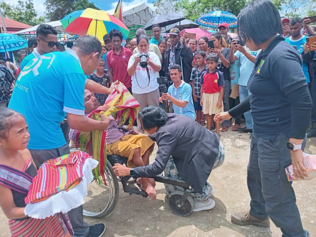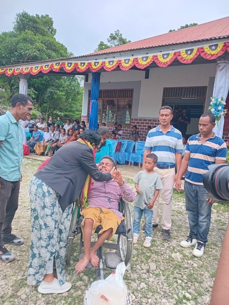 Soibada, 10-12-2025: Sua Exelencia Ministra Solidariedade Sosial e Inkluzaun(MSSI) Sra.Verรณnica das Dores ohin hala’o visita Domilisiรกriu ba Maluk Difisensia no Vunerรกvel iha Suku Lima iha Postu Administrativo Soibada