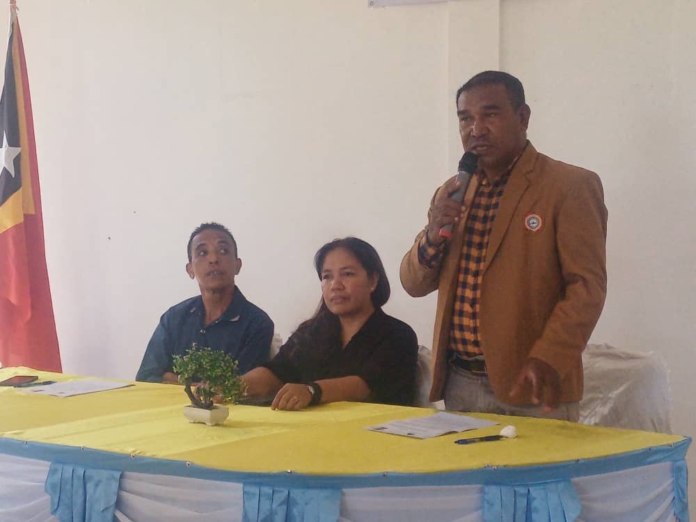 Maria Goretti Marques Belo, loke Abertura ba formasaun Dadus Iha Munisipiu Manatuto akompanha husi; SecretΓ‘rio Municipal Dos Assuntos Sociais E OrganizaΓ§Γ΅es ComunitΓ‘rias Sr. Natalino Martins Carvalho,