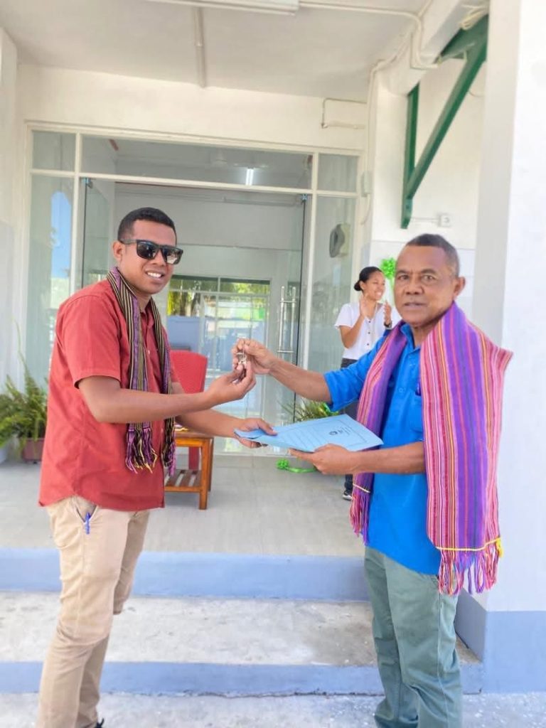 Manatuto 15-Dezembro-2025; Sekretaria Munisipal Dos Asuntos Planeamento Investimentu Dezenvolvimentu Integradu PIDI Sra.Domingas Gilpia akomapanha Husi Diretor PDEM, Diretor Fiskalizasaun No Compania Ailili, Entrega Centro Saude internamento Manatuto Villa Ba Servico municipal de Saude Manatuto, obra ne kostrui ho osan montante $84.000,00.
