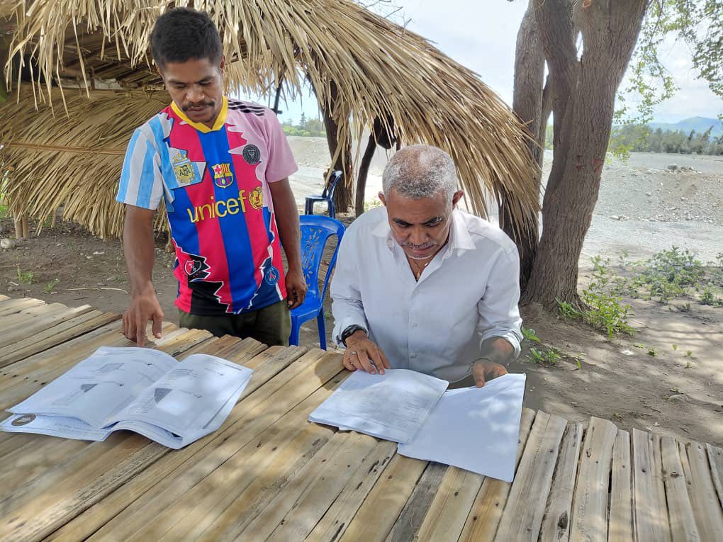 Manatuto 11-Dezembro 2025; Prezidente da Autoridade Munisipal de Manatuto Sr. Luis Inacio Henrique Fernandes Tun direita ba terenu Hodi halo Observasaun ba irigasaun Nun-Luli Postu Manatuto Villa Munisipiu Manatuto