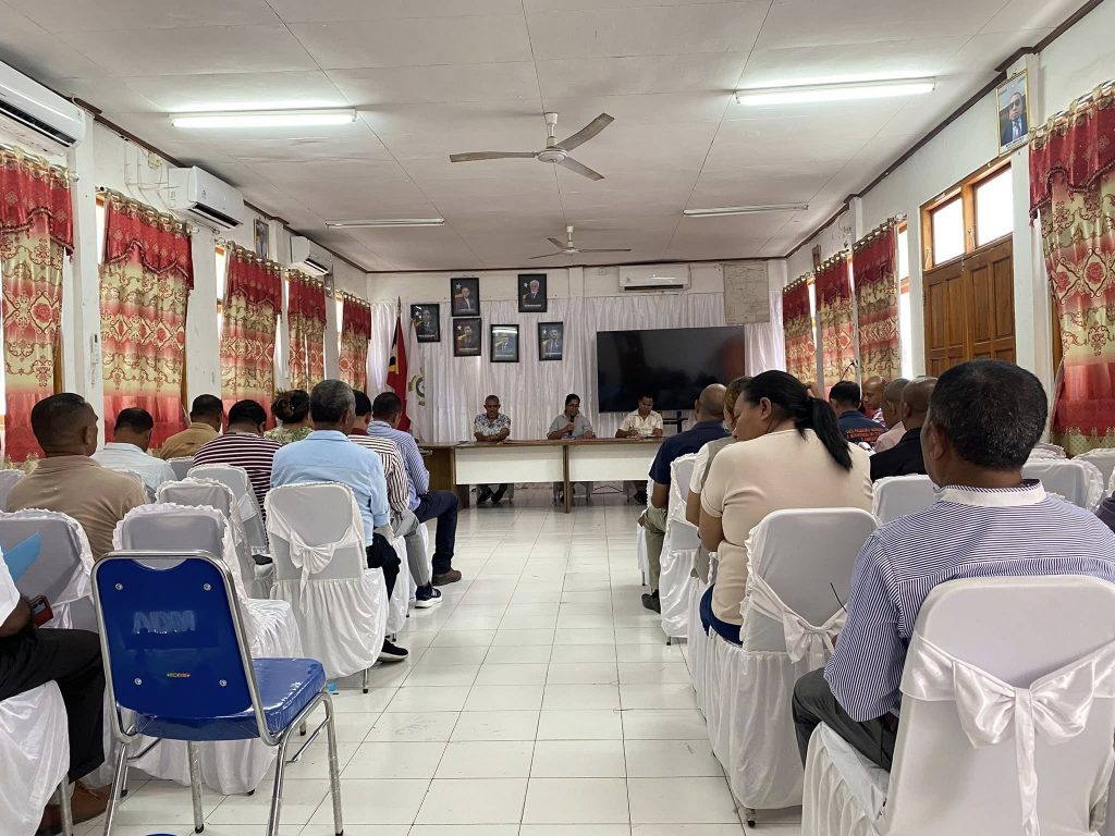 Manatutoโ€”Kuarta-Feira, 28/01/2026, Exelรฉnsia Prezidente Autoridade Munisipรกl, ๐’๐ซ. ๐‹๐ฎ๐ข๐ฌ ๐ˆ๐ง๐š๐œ๐ข๐จ ๐‡๐ž๐ง๐ซ๐ข๐ช๐ฎ๐ž ๐…๐ž๐ซ๐ง๐š๐ง๐๐ž๐ฌ halo abertura ba atividade “Aprezentasaun Rezultadu Kondisaun Minima” husi ekipa tรฉkniku AKM-MAE iha Salaun Autoridade Munisรญpiu Manatuto