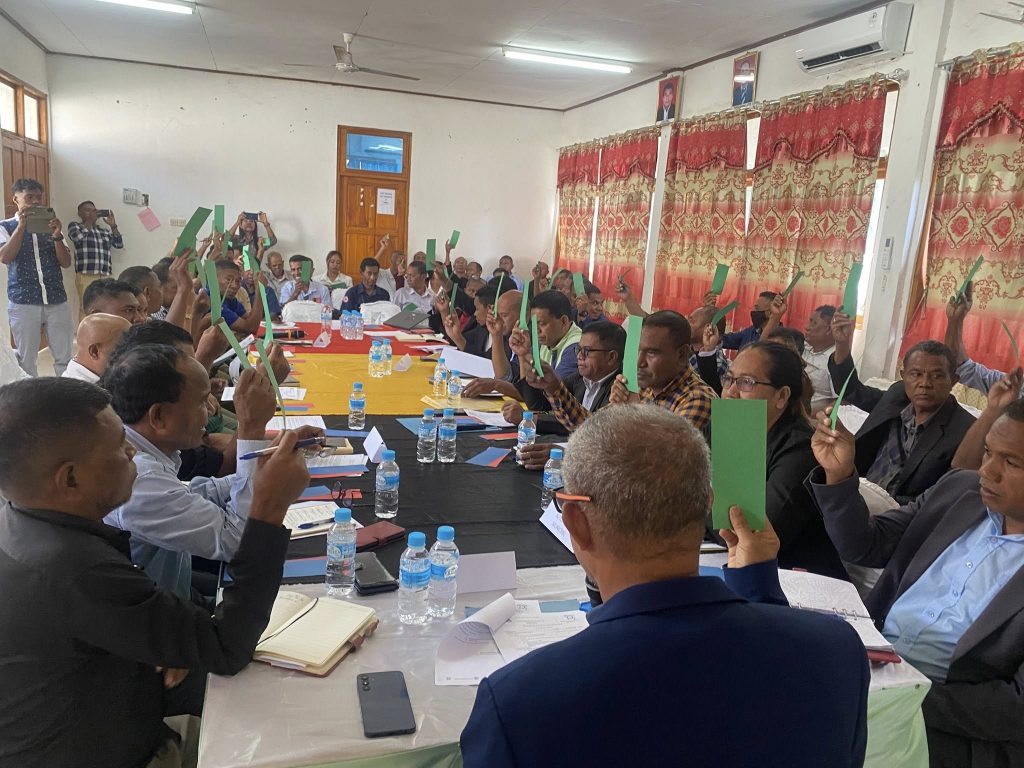 Manatutoβ31-03-2026, Autoridade Munisipal Manatuto halaβo Reuniaun Konselhu Kordenasaun Munisipal ho Membru Konselhu (KKM) iha Salaun Autoridade Munisipal Manatuto Villa.