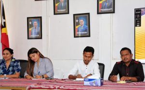 Prezidenti da Autoridade Munisipal Manatuto Sr.Luis inacio Henrique Fernandes Akomapinha Diretor JerΓ‘l Institutu NasionΓ‘l Administrasaun PΓΊblika (INAP), Sr. Policarpo Boavida, nu’udar KoordenadΓ³r ba Asistensia Tekniku hodi Mellora Prestasaun Servisu iha Administrasaun LokΓ‘l, hamutuk ho ekipa, kontinua presta asistΓ©nsia ba Autoridade Munisipal Manatuto iha Salaun Auntoridade Munisipiu Manatuto.