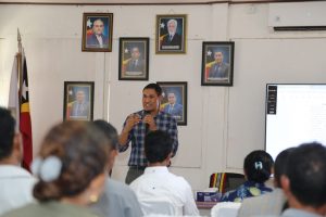 Iha ambitu atividade ba loron daruak nian, partisipa mΓ‘simu husi PAM, Sekretariu Munisipal, Administrador Postu Administrativu sira, Diretores Servisus Munisipais, Xefe Departamentu no Funsionariu sira, hodi kontinua halo aprezentasaun ba materia kona-ba ToponΓ­mia das OrganizaΓ§Γ£o dos Aglomerados husi tΓ©kniku DG-STOU, Sra. Felismina,; Aprezentasaun Prosedementu Implementasaun PNDS husi Diretor PNDS, Sr. Bartolomeu Dias Tilman; Aprezentasaun Timeline Planu Dezenvolvimentu Munisipal husi Tekniku SEDL, Sra. Fidelia; Aprezentasaun Liga Ba Kuadru Pesoal Iha Autoridade Munisipal, Autoridade Administrativa Atauro no RAEOA husi Sr. Mariano, no Remata ho sesaun husu no hatan.