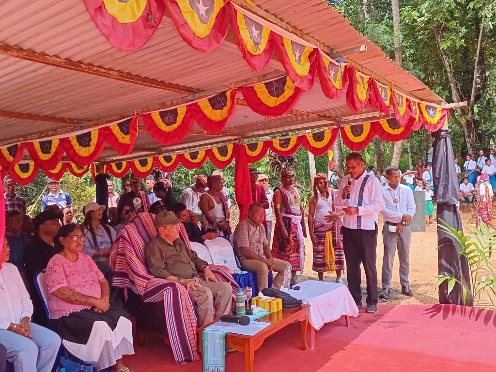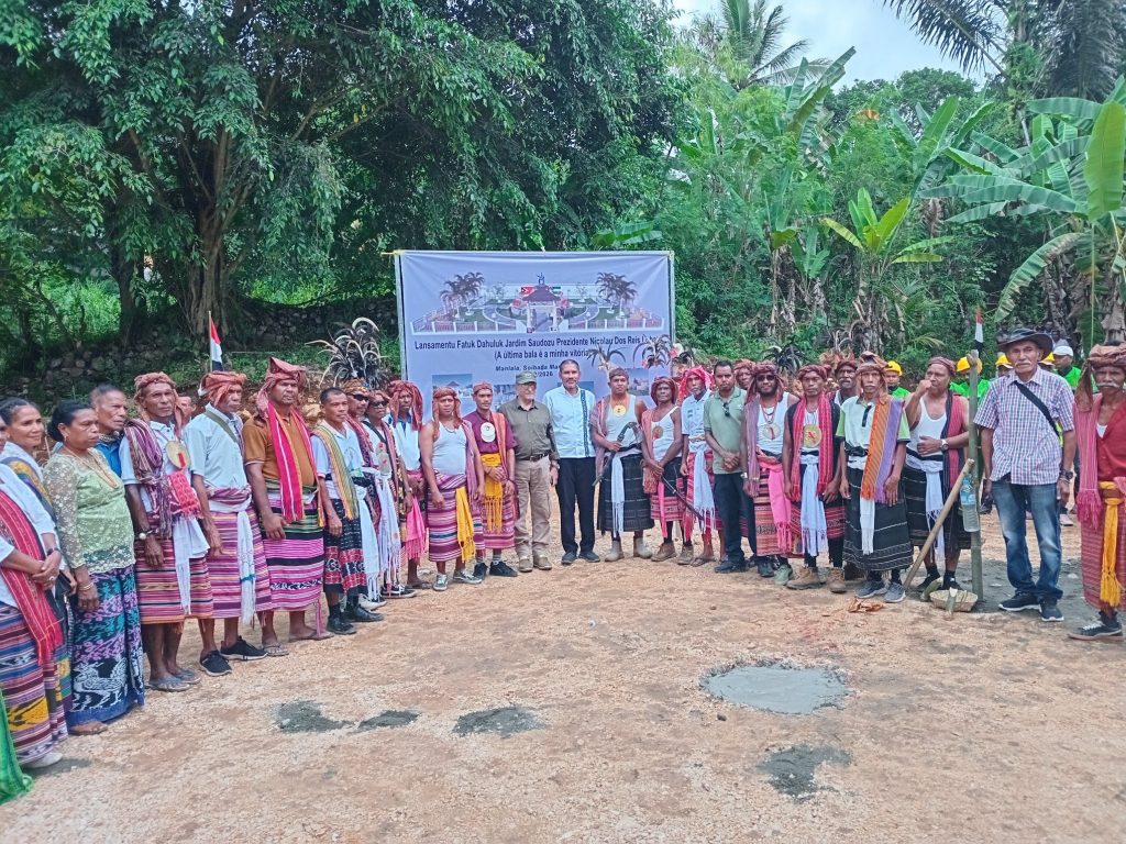 Soibada, 10-02-2026: Presidente RepΓΊblica DemocrΓ‘tica Timor Leste Sua Exelencia DR.JosΓ© Manuel Ramos Horta hamutuk ho FamΓ­lia Saudozo Presidente Nicolau Lobato ohin Halo Lansamento ba Fatuk dahuluk Monumento Saudozo nian iha nia Moris Fatin Sasatan, Posto Administrativo Soibada Munisipio Manatuto.