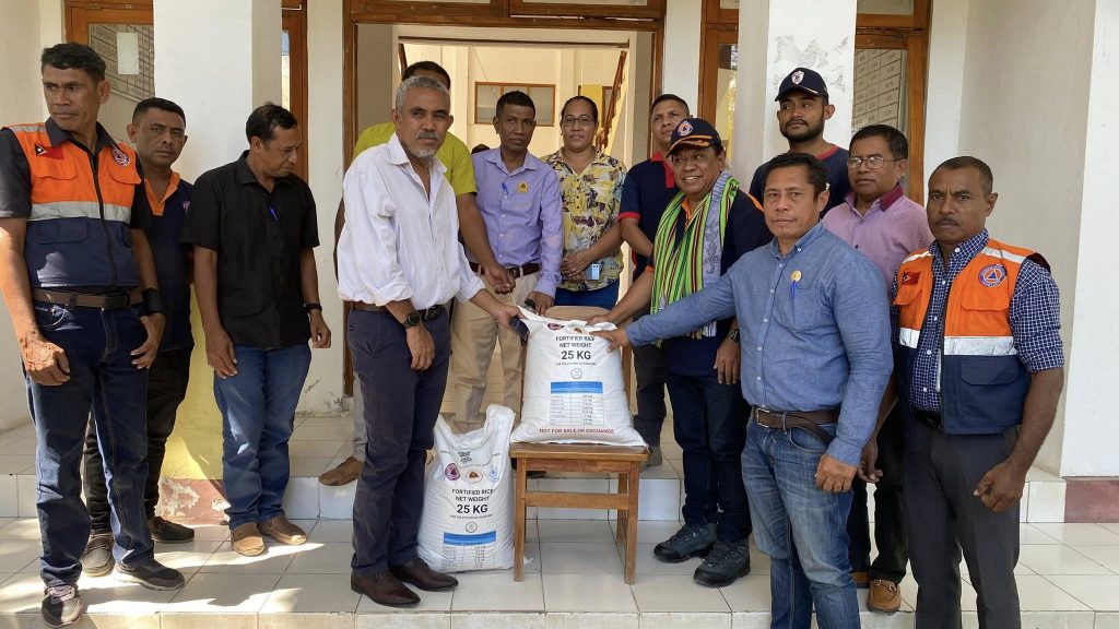 Manatuto, 22 Agostu 2025 – Prezidente da Autoridade Munisipal de Manatuto Sr.Luis Inacio Henrique Fernandes Simu Fos 25 Kg Hamutuk 500 Sakas husi Prezidente Autoridade Protesaun SivΓ­l MunisΓ­piu Jesuino dos Reis de Matos Carvalho akompaΓ£ husi Komandante APC MunisΓ­piu Manatuto Afonso Soares da Silva ho estrutura iha Salaun Autoridade MunisΓ­piu Manatuto.
