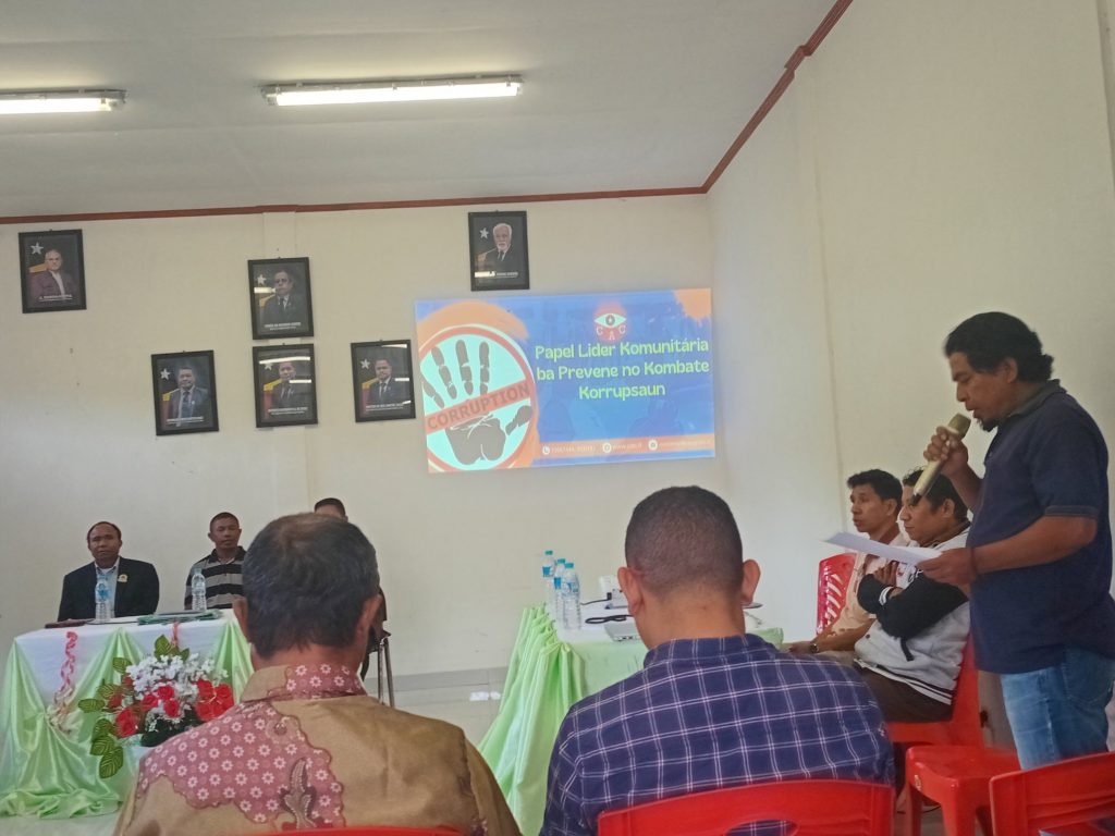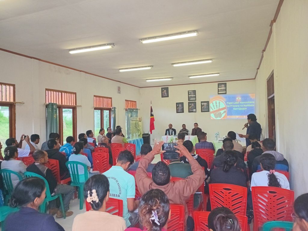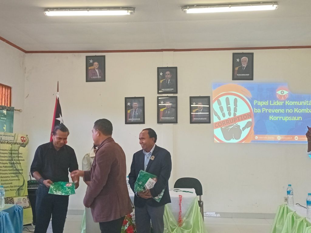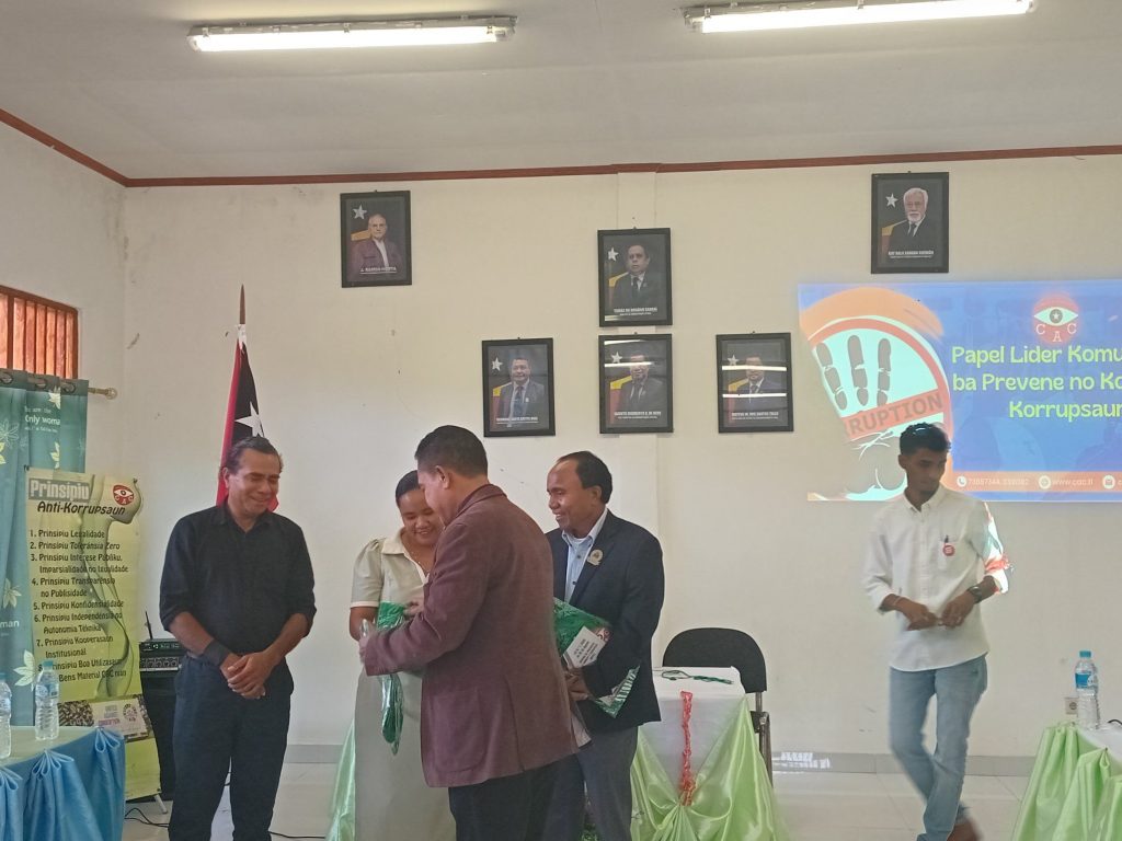 Iha Sensiblizasaun ne’e Apresenta materia husi Adjunto CAC Sr.RosΓ‘rio Araujo ho Director Geral CAC….ho ekipa to’o remata.