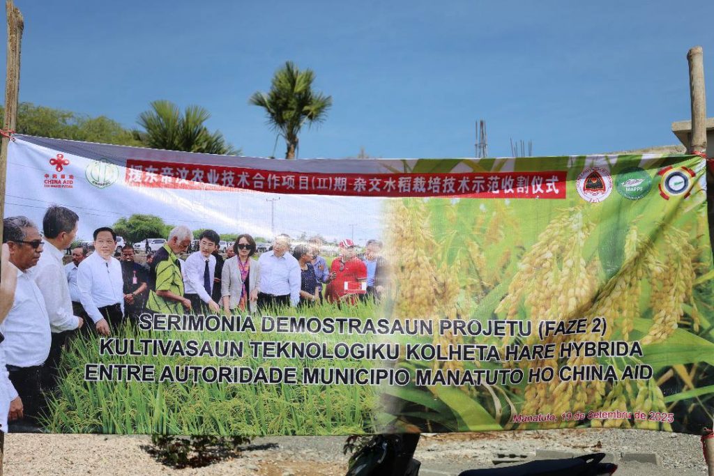 S.E. Ministru MAE, TomΓ‘s do RosΓ‘rio Cabral, hamutuk ho Vise Ministru Asuntu Parlamentar Aderito Hugo, no representante Embaixada Xina nian iha Timor-Leste, PAM Manatuto hamutuk ho Diretor Geral desenvolvimentu lokal no diretor agrikultur servisu municipiu halo atividade kultivasaun kolheta hare hybrida iha munisΓpiu Manatuto.