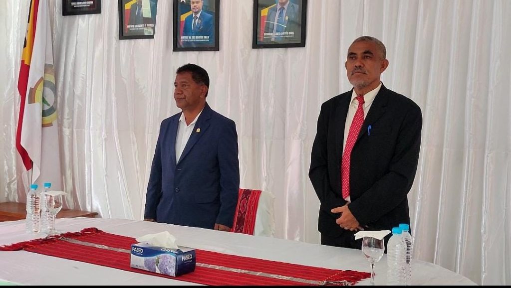 Manatuto, Tersa, ๐4 ๐ ๐๐ฏ๐๐ซ๐๐ข๐ซ๐ฎ ๐๐๐๐ โ Vise-Ministru Administrasaun Estatรกl, S.E. ๐๐๐๐ข๐ง๐ญ๐จ ๐๐ข๐ ๐จ๐๐๐ซ๐ญ๐จ ๐๐จ๐ฆ๐๐ฌ ๐๐ ๐๐๐ฎ๐ฌ, Hamutuk ho Kordenador Avaliasaun Kondisaun Minima, halaโo enkontru koordenasaun ho Prezidente Autoridade Munisรญpiu Manatuto Sr. Luis Inacio Henrique Fernandes ho estrutura, sobre preparasaun ba vizita ofisiรกl husi S.E. Primeiru-Ministru, ๐๐๐ฒ ๐๐๐ฅ๐ ๐๐๐ง๐๐ง๐ ๐๐ฎ๐ฌ๐ฆ๐ฬ๐จ, neโebรฉ ajenda ona ba Sexta-feira, loron 27 fulan neโe.