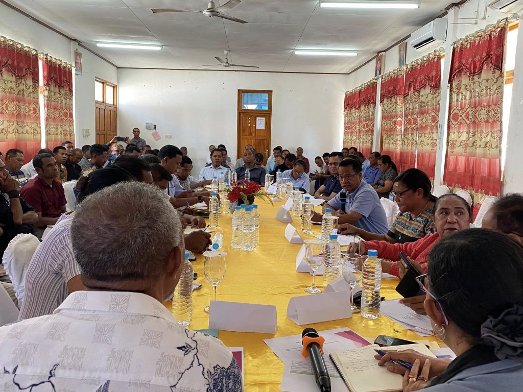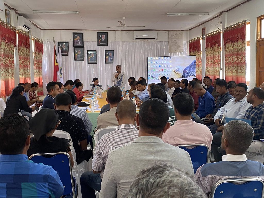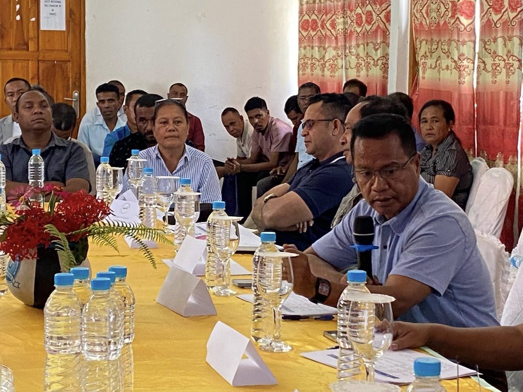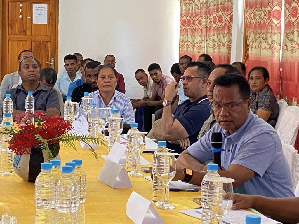 MANATUTOβ 4-03-2026, Presidente da Autoridade Munisipal de Manatuto Sr.Luis Inacio Henrique Fernandes akompanha husi SECAM Finansas, SECAM Asuntos Sosiais, Diretores Munisipais, Delegasaun Territorial, Xefi Departementos, Administrador Postu 6, halao sorumutu ho Komisaun (C) husi Parlamento Nasional nebe trata asunto Finansas, halo fiskalizasaun ba ezekusaun orsamento tinan 2025/2026 iha salao Autoridade Munisipal manatuto.