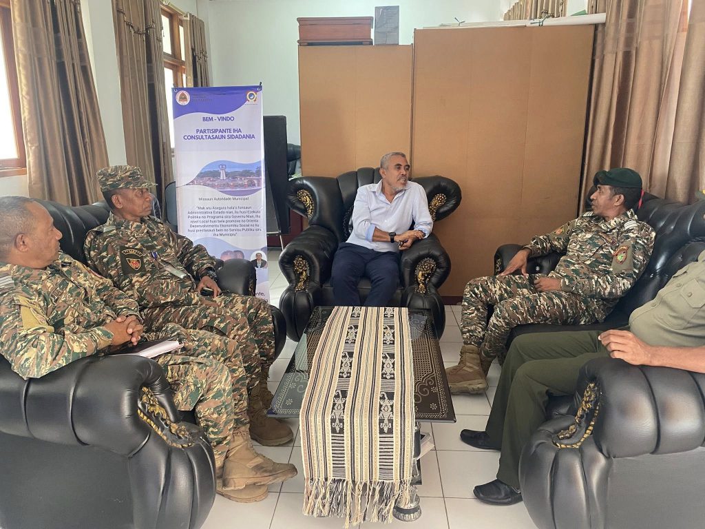 Manatutoβ09-07-2025βPrezidenti da Autoridade Munisipal de Manatuto Sr.Luis Inacio Henrique Fernandes, hetan Vizita Trabalho husi komandante Apoio Geral Tenente Coronel Joao Bosco Ximenes β LENOKβ iha Sala Autoridade Munisipiu Manatuto,